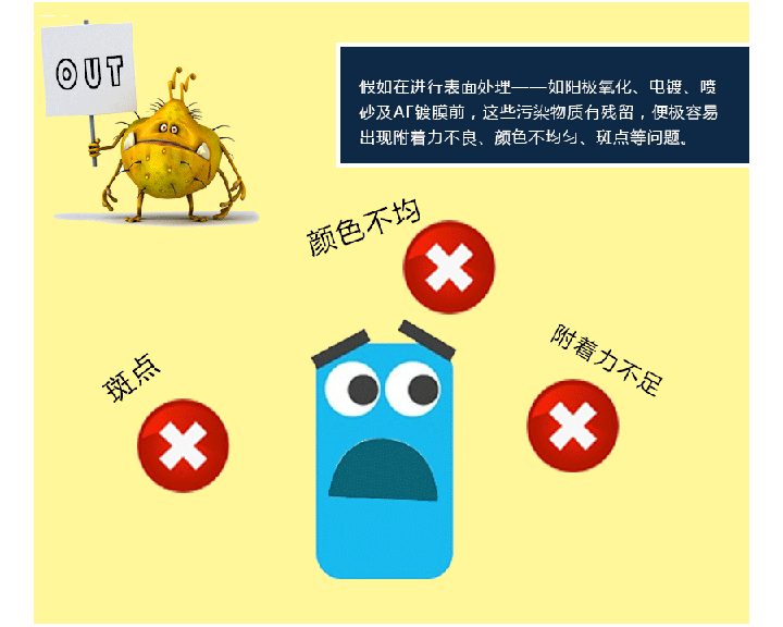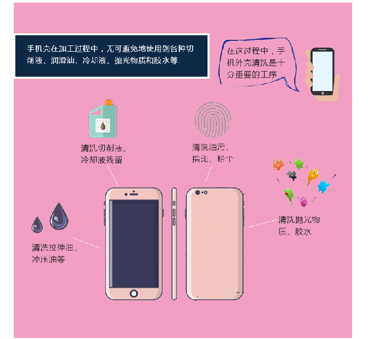 業(ye) 內(nei) 資深人員表示,手機外殼表麵處理,近70%的表麵處理失效問題是由清洗不幹淨導致。