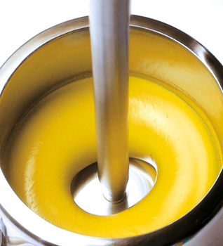 2、 單壁容器固定在雙層容器的容器中。粉狀成分被攪拌到液體(ti) 組分中。