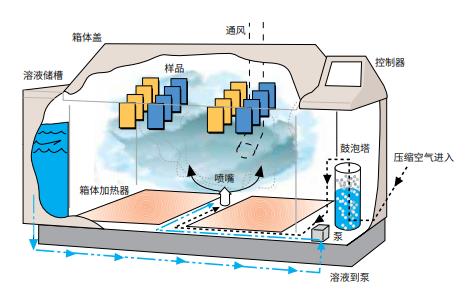 在噴霧循環期間,腐蝕鹽霧箱進行常規操作: