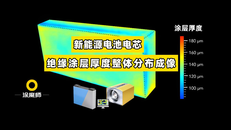 塗魔師3D非接觸整體(ti) 膜厚成像係統,能準確檢測電芯整體(ti) 絕緣塗層厚度分布情況,即使是棱邊或R角難測部位,塗魔師也能快速準確測量,高效協助廠家判斷絕緣塗層是否均勻一致,邊角塗覆是否達到要求,及時對塗裝工藝進行可視化監控與(yu) 優(you) 化。