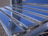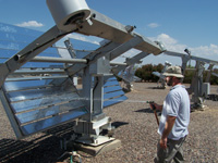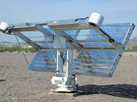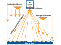 | 測試樣品放置在鏡麵背麵,以重新吸收反射的太陽光。Q-TRAC 係統在測試耐久性材料方麵表現尤為(wei) 出色。 | 利用一係列 10 鏡麵陣列反射全光譜太陽光,並將其集中至測試樣品上。鏡麵調節對係統性能至關重要。 |