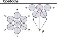 液體(ti) 中分子之間的吸引力是產(chan) 生表麵張力的原因。如果我們(men) 觀察某種介質的內(nei) 部分子結構的時候,會(hui) 發現分子間的吸引力是相同的。因此,分子所受到的各個(ge) 方向的力是相同的,合力為(wei) 零。(如圖)