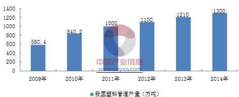 2009-2014年我國塑料管道產(chan) 量變化