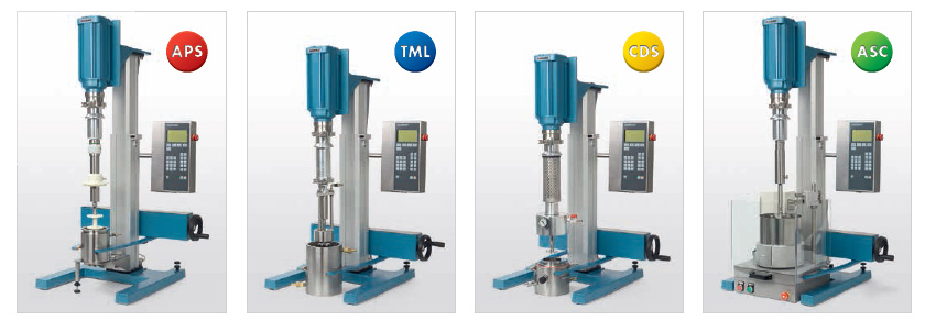 不同研磨係統包括:APS研磨係統,TML籃式研磨係統,CDS真空係統,SR-03/04 轉子-定子 (乳化)係統,以及ASC高粘度材料用的刮刀。