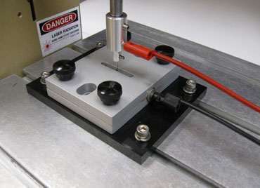 在前板的切口針使其與(yu) 試樣接觸。在壓力和磨料作用的控製條件下,針在芯軸的中心線頂點上來回針式的移動。當突破發生時,測試自動停止。
