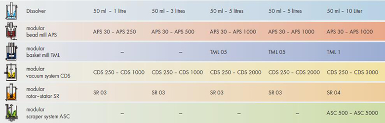 將DISPERMAT 高速分散機與(yu) 模塊化分散研磨係統組合可以轉換成不同的分散研磨係統,包括真空分散機,乳化機,立式砂磨機,一個(ge) 封閉的垂直籃式砂磨機和高粘度產(chan) 品分散機。