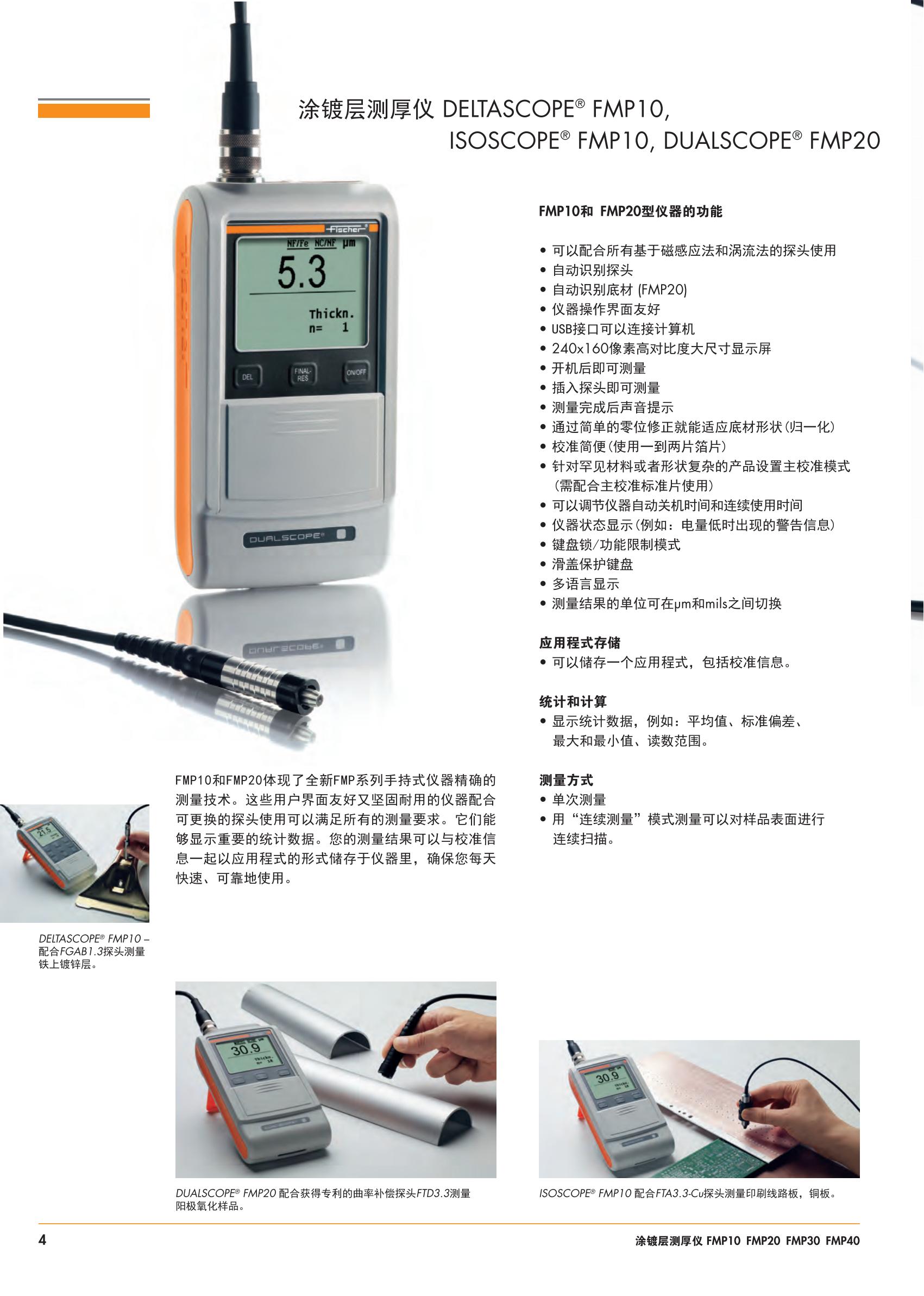 菲希爾FMP40塗層測厚儀(yi) 相比FMP10和FMP20,具有更多測量功能、更大的存儲(chu) 容量和全麵的圖形分析和統計計算功能。可選兩(liang) 用型探頭,可自動識別出基體(ti) 材質進行精準測量。同時還能夠在一次測量過程中同時測出兩(liang) 層塗鍍層的厚度油漆層/鋅層,並且進行分別顯示。