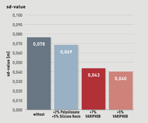 1、高效防水,降低毛細吸水:VARIPHOB® 防水係列能夠大幅降低毛細管吸水性,有效阻止水分通過毛細作用滲透到塗料內(nei) 部。