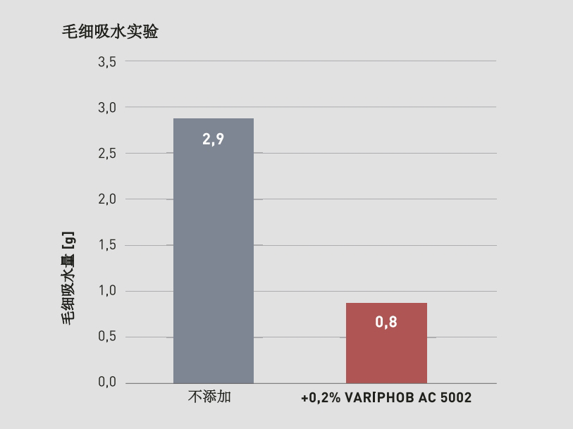 AC 5002 作為(wei) 粉末狀憎水憎水劑,可在基材固化後表麵形成憎水保護,能用於(yu) 水泥基礦物為(wei) 原料的幹混砂漿體(ti) 係,阻止材料中毛細管對水的吸收,大大降低基材的吸水率,提高優(you) 異的憎水性能;可應用在防水砂漿,膩子,填縫劑,裝飾砂漿等場景;