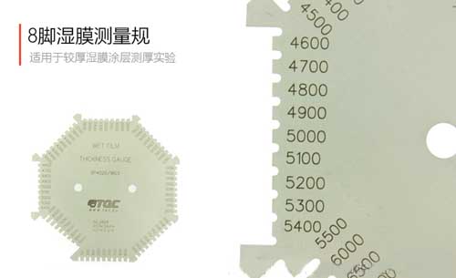 荷蘭(lan) TQC SP4020八角濕膜厚度量規,可以測量50-10000微米濕膜厚度,精確度達到50微米,適用於(yu) 較厚的濕膜塗層測厚實驗。