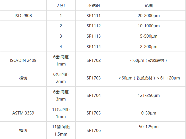 TQC破壞性測厚儀(yi) 刀刃有SP1111/SP1112/SP1113/SP1114四種型號,不鏽鋼材質,用於(yu) 測量單一或多樣的底材的塗層測厚。