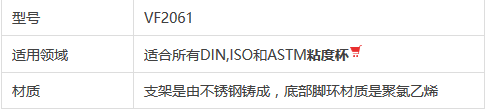 粘度計支架是由不鏽鋼鑄成,底部腳環材質是聚氯乙烯,適合所有DIN、ISO和ASTM粘度杯。