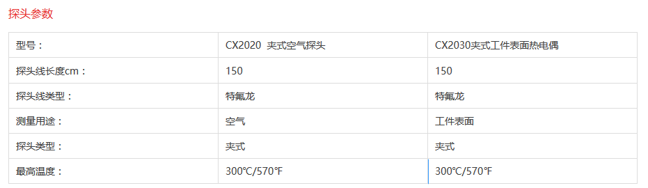 TQC CX2020探頭是可以用來測量空氣/工件表麵的儀(yi) 器,最高溫度:300℃/570℉。
