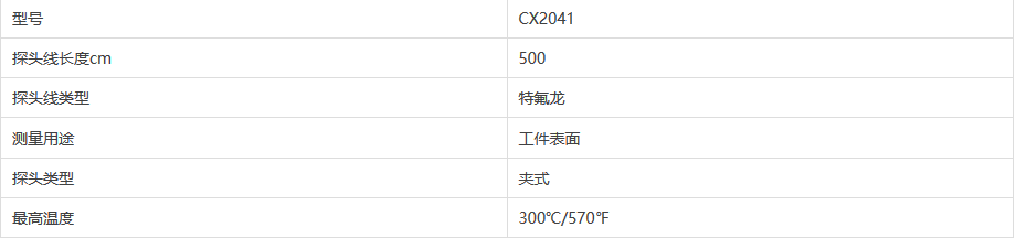 CX2041爐溫探頭是Curve-X2探頭,具有優(you) 點是:探頭與(yu) 工作表麵盡可能好的接觸,輕便和全麵的形狀以避免影響溫度,易清洗的特氟龍護套,柔韌性好又堅固的金屬導線。